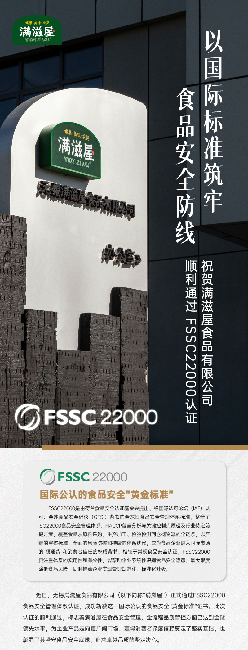 祝贺满滋屋食品有限公司顺利通过 FSSC22000认证